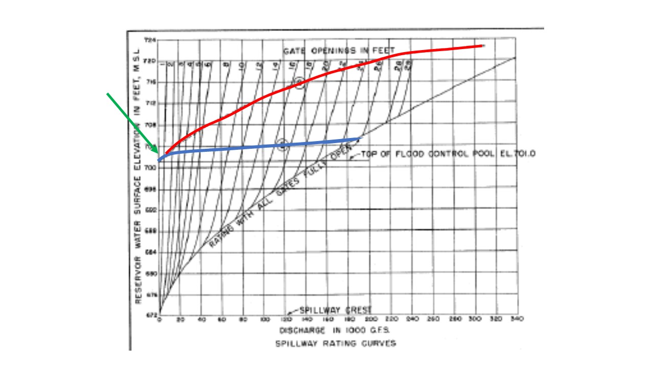 or the flow associated with flood stage at a downstream regulating station. In the figure below, it appears that the